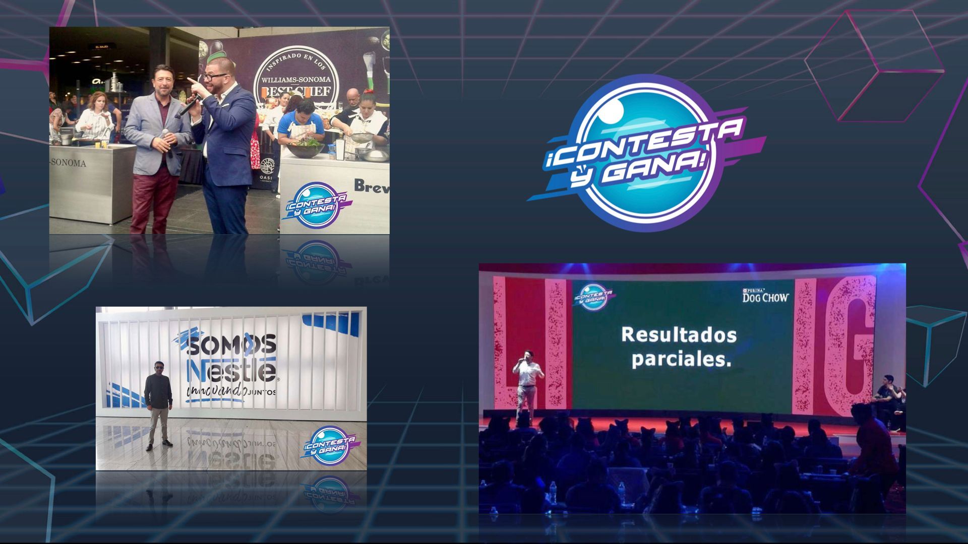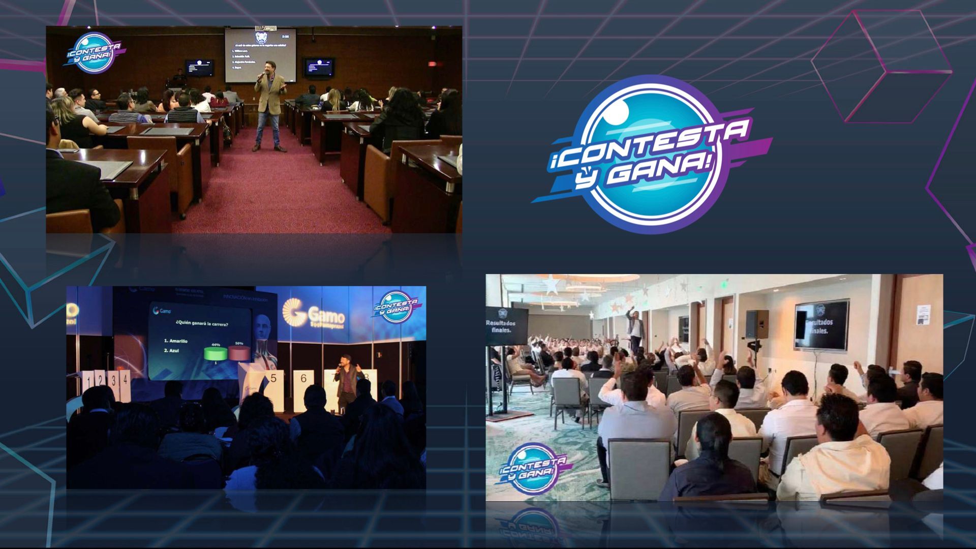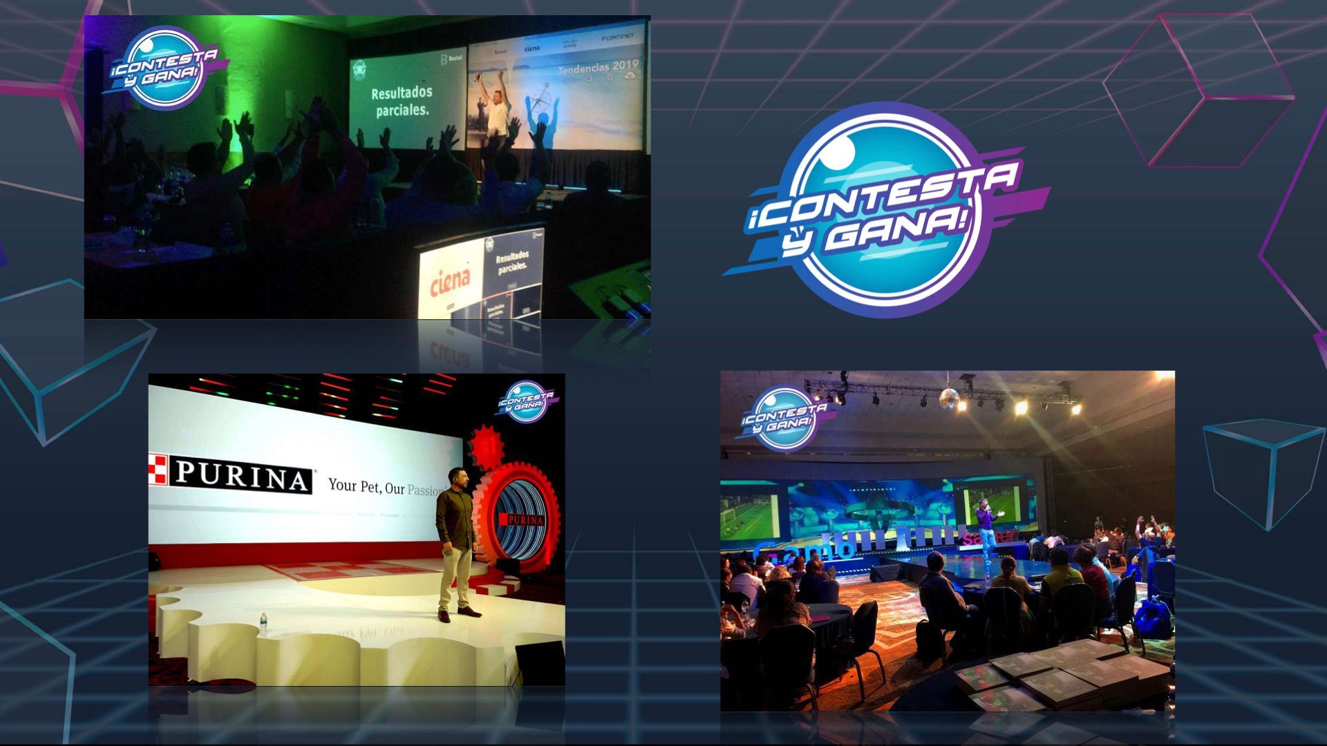 Contesta y Gana es un juego de trivias armado con varios tipos de preguntas diseñado para eventos corporativos y eventos sociales.